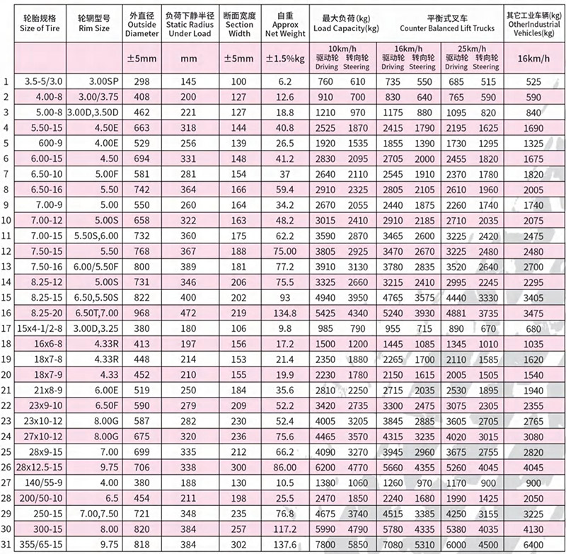 叉車實心輪胎采用國家標(biāo)準(zhǔn)輪輞,可與充氣輪胎互換。與充氣胎相比,具有耐磨、使用壽命長、滾動阻力小、能耗低、耐刺破、安全性好等特點,有更高的性能價格比,在低速、高負(fù)荷運行車輛領(lǐng)域,是充氣胎的換代產(chǎn)品。與同類產(chǎn)品相比,其獨特的三層膠料及胎側(cè)反弧結(jié)構(gòu)設(shè)計,有效吸收震動能量,體現(xiàn)人性化設(shè)計。堅韌的基部膠,鋼環(huán)加強,有效杜絕滑圈現(xiàn)象。